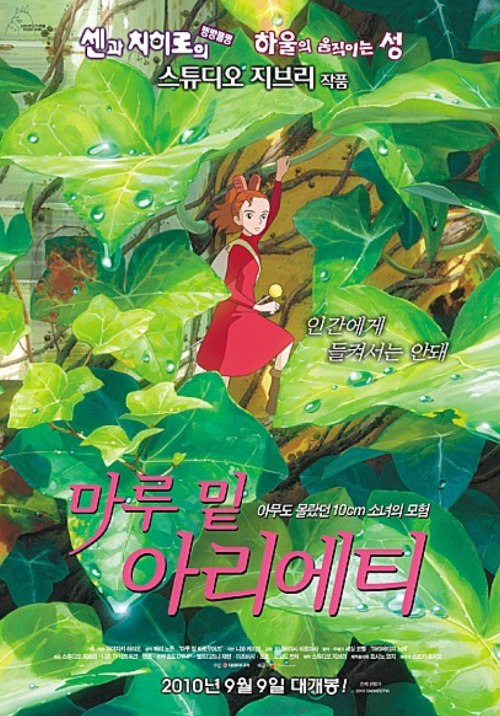 <마루 밑 아리에티>는 영국의 아동 문학 작가인 '메리 노튼'이 1952년 발표한 판타지 소설 'The Borrowers'라는 작품을 원작으로 만들어졌다. 'borrow'는 '빌리다'라는 뜻의 영단어로 'borrowers'는 '빌리는 사람들'이라는 뜻이다. '아리에티'처럼 작은 사람들이 마루 밑에 살면서 사람들의 물건을 빌려 쓰는 이야기이다. <마루 밑 아리에티>처럼 소설 'The Borrowers'를 원작으로 한 영화도 있다. 1999년 '피터 휴잇' 감독의 'Borrowers'라는 영국 영화와 2011년 개봉한 '톰 하퍼' 감독의 리메이크 영화 'The Borrowers'다. 하지만 코미디 가족 영화로 만들어진 두 영화보다 '소인들이 물건을 빌려간다'는 동화적인 요소를 더 잘 표현해낸 작품은 단연 지브리 스튜디오의 <마루 밑 아리에티>라고 생각한다.